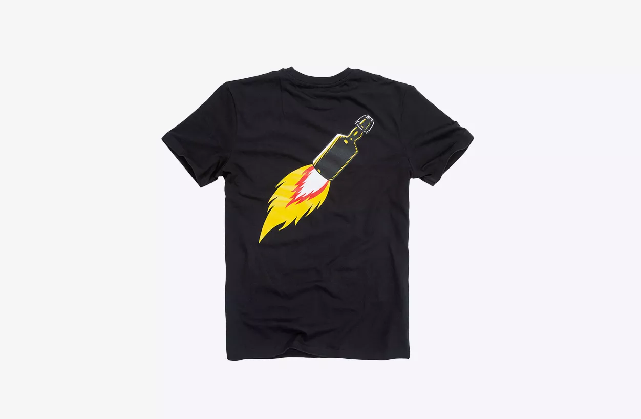 Für die Crew von Inter Comestibles (IC) bedruckten wir viele verschiedenfarbige T-Shirts als Teambekleidung mit ihrer Flaschen-Rakete. Das Flaschen-Logo kommt vom genialen Zürcher Grafiker Michel Casarramona.